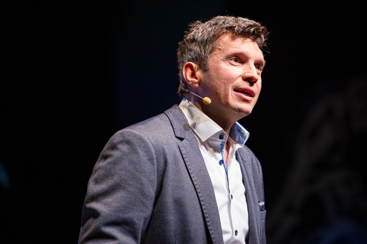 Der Vortragstitel hatte es 2023 in sich: „Der Fluch hinter der Flucht – die kulturelle Sucht“. In 20 Minuten erläuterte Moritz auf der Bühne des ausverkauften Münchner Volkstheaters, weshalb wir allein mit Hilfe der Bewusstwerdung über interne Kommunikation sehr sehr viel Leid auf diesem Planeten gar nicht erst entstehen lassen!